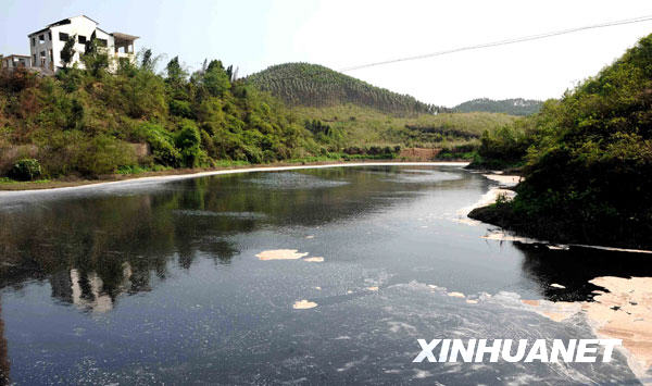 3月29日,上游一家淀粉廠的污水池仍然散發(fā)著臭味,污水由排水口直通河中。新華社記者 陳瑞華 攝