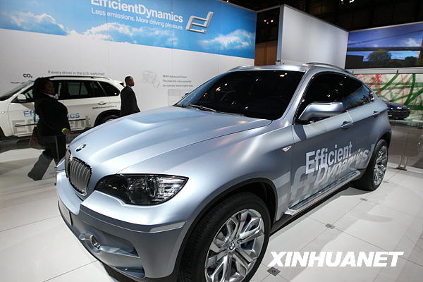 這是4月8日在美國(guó)紐約舉行的紐約國(guó)際車展媒體開放日上拍攝的一款寶馬X6混合動(dòng)力車。新華社記者劉欣攝