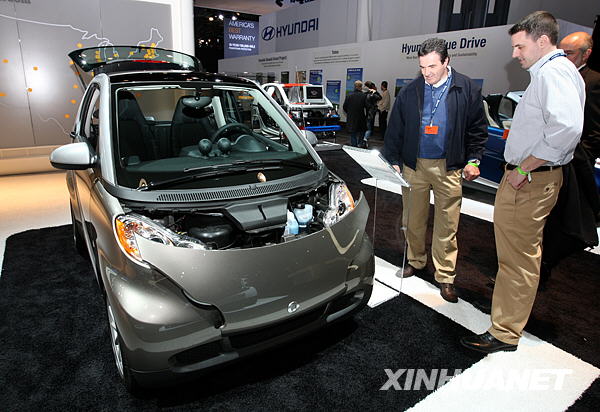 當(dāng)日,2009紐約國(guó)際車展對(duì)媒體開放,各大參展商主打節(jié)能環(huán)保牌,混合動(dòng)力車、電動(dòng)車等節(jié)能車型大行其道。本屆車展將于4月10日至19日對(duì)公眾正式開放。新華社記者劉欣攝
