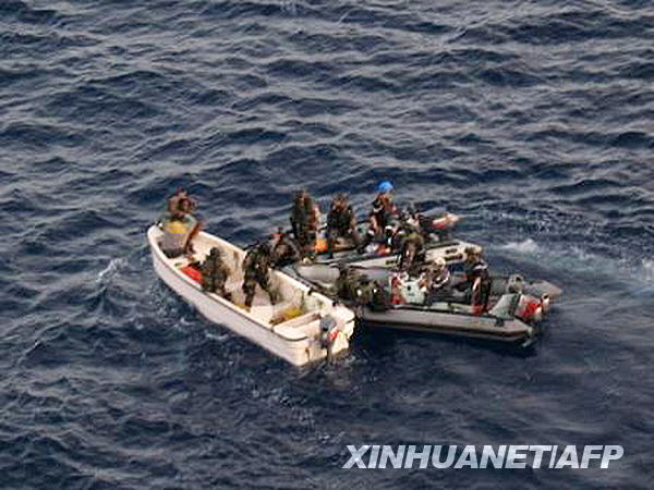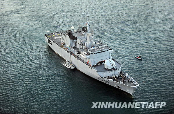 這是2008年11月25日在吉布提港附近海域拍攝的名為“Le Nivose”的法國軍艦。法國國防部2009年4月15日宣布,這艘法國軍艦當(dāng)天在肯尼亞附近海域巡邏時(shí)抓獲了11名海盜。