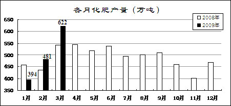 重點(diǎn)監(jiān)測(cè)的化工產(chǎn)品中,“兩堿”價(jià)格繼續(xù)下降,多數(shù)化肥產(chǎn)品價(jià)格持續(xù)回升。3月份,燒堿(片堿)平均價(jià)格為2850元/噸,比去年12月份下降250元/噸,同比下降7.8%;純堿1150元/噸,比去年12月份下降130元/噸,同比下降44.7%。尿素1920元/噸,比去年12月份上漲200元/噸,同比下降1%;國(guó)產(chǎn)磷酸二胺2950元/噸,比去年12月份下降50元/噸,同比下降28%;進(jìn)口氯化鉀4300元/噸,比去年12月份下降100元/噸,同比上漲45.8%。電石3080元/噸,比去年12月份上漲70元/噸,同比下降4.6%。