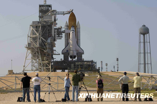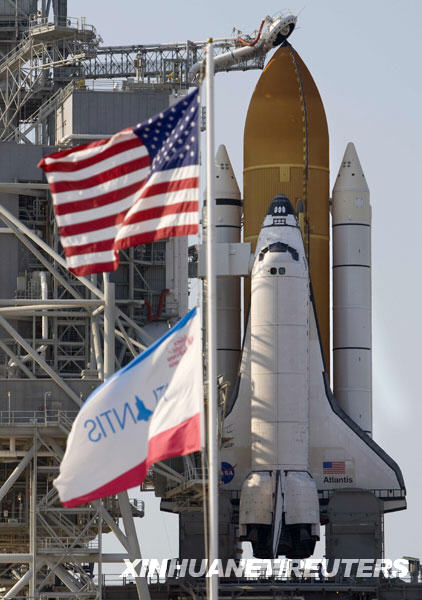 5月10日,在美國佛羅里達(dá)州肯尼迪航天中心,“阿特蘭蒂斯”號航天飛機(jī)在發(fā)射臺上等待發(fā)射。新華社/路透 |