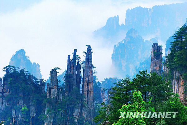山水畫般的張家界國家森林公園風(fēng)景(5月15日攝)。張家界國家森林公園位于湖南省西北部張家界市境內(nèi),成立于1982年,是中國第一個(gè)國家森林公園,擁有奇特的大面積石英砂巖峰林地貌,1992年12月被聯(lián)合國列入《世界自然遺產(chǎn)名錄》,2004年2月被列為世界地質(zhì)公園。整個(gè)公園自然風(fēng)光以峰稱奇、以谷顯幽、以林見秀,被稱為“中國山水畫的原本”。近年來,張家界大力推進(jìn)旅游行業(yè)整合提升,加大新線路、新產(chǎn)品開發(fā)力度,促進(jìn)了旅游業(yè)的發(fā)展。2008年,張家界接待國內(nèi)外游客1600多萬人次,實(shí)現(xiàn)旅游總收入80多億元。