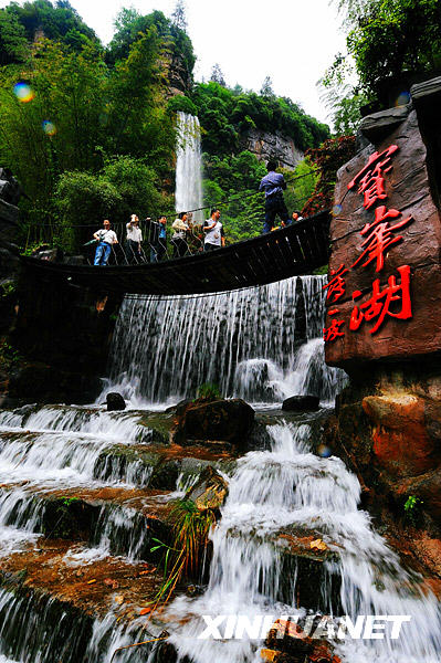游客游覽張家界寶峰湖風(fēng)景區(qū)(5月16日攝)。張家界國家森林公園位于湖南省西北部張家界市境內(nèi),成立于1982年,是中國第一個(gè)國家森林公園,擁有奇特的大面積石英砂巖峰林地貌,1992年12月被聯(lián)合國列入《世界自然遺產(chǎn)名錄》,2004年2月被列為世界地質(zhì)公園。整個(gè)公園自然風(fēng)光以峰稱奇、以谷顯幽、以林見秀,被稱為“中國山水畫的原本”。近年來,張家界大力推進(jìn)旅游行業(yè)整合提升,加大新線路、新產(chǎn)品開發(fā)力度,促進(jìn)了旅游業(yè)的發(fā)展。2008年,張家界接待國內(nèi)外游客1600多萬人次,實(shí)現(xiàn)旅游總收入80多億元。