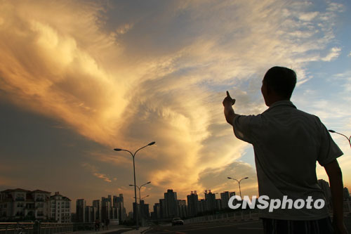 2009年8月19日傍晚,雨后的北京城出現(xiàn)火燒云奇觀。