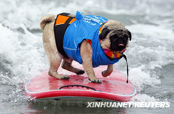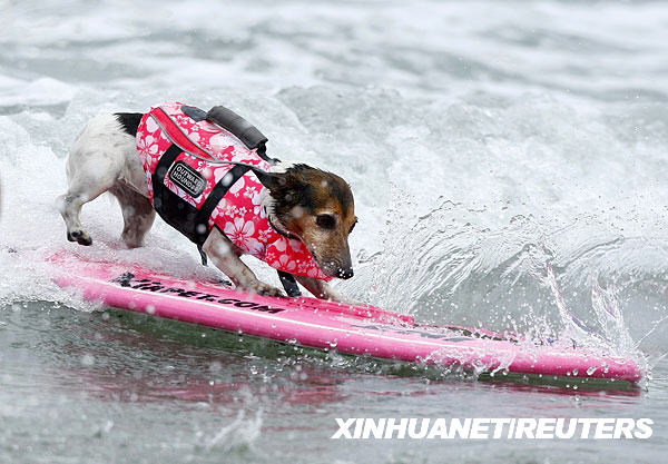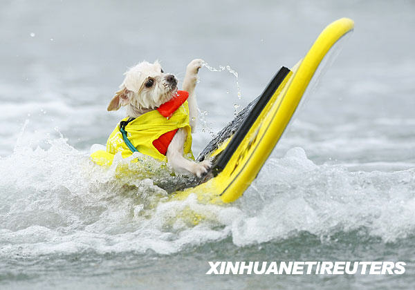9月13日,在美國加利福尼亞州的德爾馬,一只6歲大的小狗體驗(yàn)沖浪。當(dāng)天,這里舉辦了一場狗狗沖浪大賽,旨在為流浪動(dòng)物籌集善款并喚起人們對寵物的愛心和責(zé)任感。 |