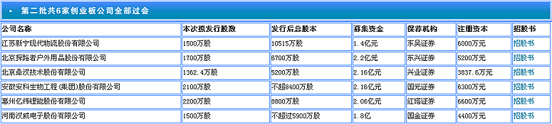 創(chuàng)業(yè)板6企業(yè)上會。 |
