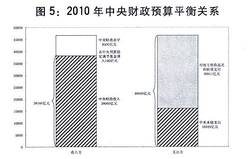 中央財政收入38060億元,比2009年執(zhí)行數(shù)(下同)增加2163.86億元,增長6%。從中央預(yù)算穩(wěn)定調(diào)節(jié)基金中調(diào)入100億元。合計收入為38160億元。中央財政支出46660億元,增加2758.86億元,增長6.3%。其中,中央本級支出16049億元,增加769.16億元,增長5%;中央對地方稅收返還和轉(zhuǎn)移支付30611億元,增加1989.7億元,增長7%。中央財政收支相抵,赤字8500億元,增加1000億元。相應(yīng)增加國債發(fā)行規(guī)模,中央財政國債余額限額71208.35億元。