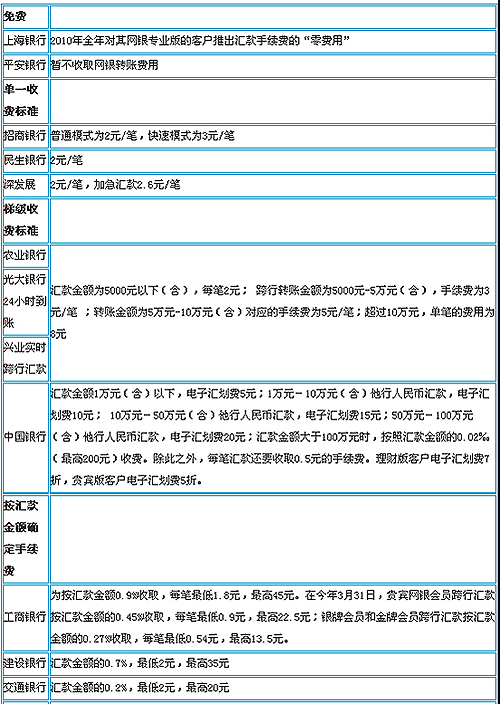 網(wǎng)上銀行同城跨行轉(zhuǎn)賬費(fèi)用一覽