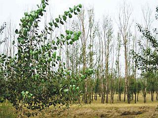 由于地下水位降低,通遼市開魯縣萬里大造林公司名下的部分成材楊樹林長勢不好。本報記者 賀勇