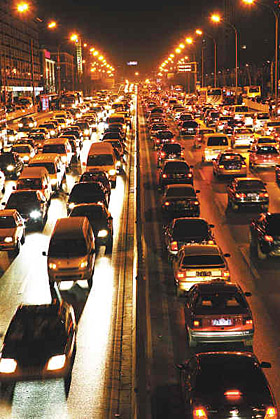 晚高峰時段,北京擁堵的路況。CFP供圖 | 核心提示 10月13日,北京正式試行“五日制限行”——機動車按尾號每周停駛一天。如何看待此次限行?除了限行,解決城市交通擁堵、空氣污染,還有哪些可供選擇的措施和方案?國外又有哪些經(jīng)驗可供借鑒?本報就這些問題采訪了有關(guān)專家。