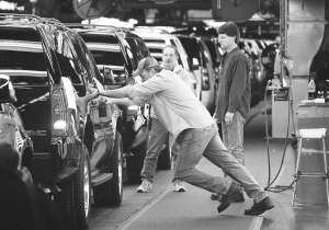 | 受金融危機影響,美國汽車業(yè)面臨嚴峻考驗。美國通用汽車公司日前宣布在12月23日之前停止位于威斯康星州金斯維勒(Janesville)工廠的SUV汽車的生產(chǎn)。CFP圖片 | 國際金融機構(gòu)破產(chǎn)倒閉的消息漸漸平息,不少分析人士認為金融市場“最壞的時候”或已過去。不過,有專家指出,對于全球?qū)嶓w經(jīng)濟而言,“冬天”才剛剛開始。