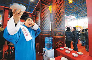 圖為北京老舍茶館的工作人員在文博會(huì)上展示北京大碗茶。新華社記者 李文攝 | 為期5天的第三屆中國北京國際文化創(chuàng)意產(chǎn)業(yè)博覽會(huì)日前在北京成功舉行。此次文博會(huì)以“文化創(chuàng)意與服務(wù)貿(mào)易”為主題,提供了交流和交易新平臺,來自全國16個(gè)省區(qū)市的1370家參展商以及韓國、美國、日本等國代表團(tuán)參加。