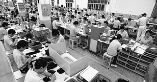 圖為東莞華寶鞋業(yè)有限公司制鞋流水線上忙碌的工人。來源:CFP | 生產(chǎn)總值增長(zhǎng)119.8倍,城市居民人均可支配收入增長(zhǎng)84倍,農(nóng)民人均純收入增長(zhǎng)76.9倍……30年來,東莞靠“三來一補(bǔ)”和加工貿(mào)易寫就傳奇,從一個(gè)落后貧瘠的農(nóng)業(yè)縣一躍成為全球知名的制造業(yè)基地。 但發(fā)端于華爾街的金融危機(jī),開始向?qū)嶓w經(jīng)濟(jì)蔓延,東莞首當(dāng)其沖。2008年,東莞經(jīng)濟(jì)遭遇前所未有的嚴(yán)峻考驗(yàn)。 臨近歲末,記者再次來到東莞,五星級(jí)酒店里,來往客商少了;街道上,閑逛的年輕人多了。但形成鮮明對(duì)比的是,工業(yè)區(qū)里還有很多企業(yè),機(jī)器在快速運(yùn)轉(zhuǎn),工人在忙碌工作,拉原材料和產(chǎn)品的貨車在大門口進(jìn)進(jìn)出出。它們?cè)诮?jīng)濟(jì)寒冬中執(zhí)著堅(jiān)持,謀求新生,像極了東莞大道兩旁迎著寒風(fēng)挺拔身姿的綠草和傲立枝頭的紫荊花。 “當(dāng)前的形勢(shì)異常嚴(yán)峻,明年還會(huì)更困難些,但憑借30年改革開放打下的深厚基礎(chǔ),東莞有信心挺過這場(chǎng)危機(jī);而且,東莞還要把危機(jī)當(dāng)成產(chǎn)業(yè)轉(zhuǎn)型升級(jí)的大好時(shí)機(jī),寧可速度慢一些,也要把結(jié)構(gòu)調(diào)整過來!睎|莞市委書記劉志庚說這話時(shí),臉上的表情是堅(jiān)定的。