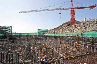 三門(mén)核電項(xiàng)目一期工程1號(hào)機(jī)組核島基礎(chǔ)施工現(xiàn)場(chǎng)。新華社記者:譚進(jìn)攝