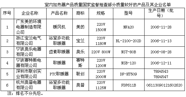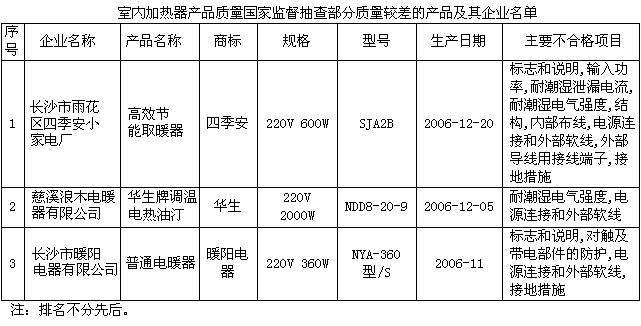 為了維護(hù)廣大消費(fèi)者的合法權(quán)益,進(jìn)一步規(guī)范室內(nèi)加熱器行業(yè)的健康發(fā)展,國家質(zhì)檢總局組織對室內(nèi)加熱器產(chǎn)品質(zhì)量進(jìn)行了國家監(jiān)督抽查,共抽查了浙江、廣東、湖南、江蘇、安徽、上海、山東等7個省市40家企業(yè)生產(chǎn)的40種產(chǎn)品,產(chǎn)品抽樣合格率為85%。