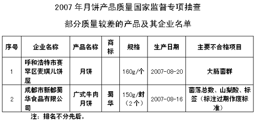 中秋將近,國家質(zhì)檢總局適時對全國月餅行業(yè)產(chǎn)品質(zhì)量進(jìn)行了國家質(zhì)量監(jiān)督抽查,并公布了不合格產(chǎn)品的生產(chǎn)企業(yè)。 為維護(hù)廣大消費(fèi)者的合法權(quán)益,讓消費(fèi)者吃上放心的月餅,從1999年至今,質(zhì)檢總局已連續(xù)九年組織對月餅產(chǎn)品質(zhì)量進(jìn)行了產(chǎn)品質(zhì)量國家監(jiān)督專項(xiàng)抽查。跟蹤抽查結(jié)果表明:目前我國月餅產(chǎn)品總體質(zhì)量狀況較好,產(chǎn)品質(zhì)量穩(wěn)步提高,特別是占據(jù)月餅主流市場的均為大中型企業(yè)和名牌企業(yè),其產(chǎn)品質(zhì)量很好。 與往年相比,今年月餅產(chǎn)品質(zhì)量國家監(jiān)督專項(xiàng)抽查主要特點(diǎn)有,抽查覆蓋面廣。今年抽查涉及了北京、天津、重慶、河北、山西、內(nèi)蒙古、遼寧、吉林、新疆等29個省、自治區(qū)、直轄市378家月餅生產(chǎn)企業(yè)的425種產(chǎn)品,實(shí)物質(zhì)量合格率為99.5%。此次抽查是歷年以來抽查覆蓋面最廣的一次。二是大中型企業(yè)的產(chǎn)品質(zhì)量持續(xù)穩(wěn)定。三是過度包裝問題得到有效控制。 抽查中發(fā)現(xiàn)的主要質(zhì)量問題有,產(chǎn)品超范圍、超限量使用食品添加劑。防腐劑主要是抑制食品中微生物的生長,起到延長食品保質(zhì)期的作用。本次抽查中有個別產(chǎn)品檢出含有苯甲酸,山梨酸含量超標(biāo)。