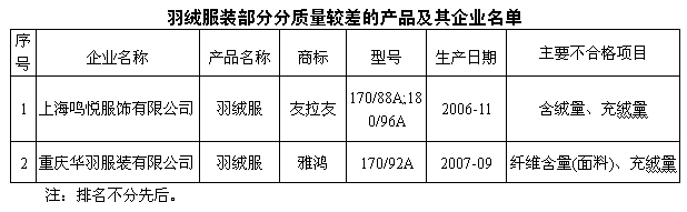 個別產(chǎn)品充絨量偏差低于標(biāo)準(zhǔn)規(guī)定的要求。充絨量表明羽絨服裝中羽絨的總克重。推薦性國家標(biāo)準(zhǔn)GB/T14272-2002《羽絨服裝》規(guī)定,羽絨服裝的充絨量偏差不得低于明示的-5%。抽查中有個別產(chǎn)品充絨量偏差低于標(biāo)準(zhǔn)規(guī)定的要求,其中有一種羽絨服產(chǎn)品的充絨量實(shí)測偏差為-25%。 2、