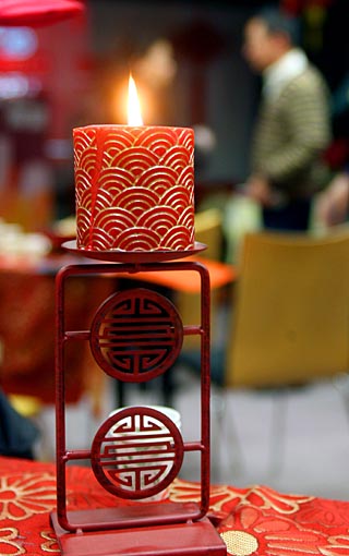 春節(jié)臨近,上海市一些充滿了時尚元素的“辭舊迎新”家居飾品受到都市時尚人群的青睞。圖為上海一個家居超市內(nèi)帶有中國傳統(tǒng)圖案元素的燭臺。
