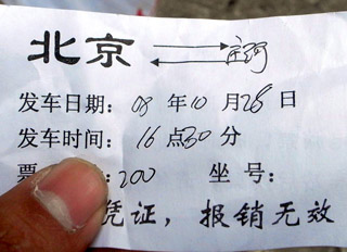 10月20日下午14時(shí),記者來(lái)到北京西站北一出口的地下出站廣場(chǎng),這里有一個(gè)免費(fèi)問(wèn)詢(xún)臺(tái),上方懸掛了幾個(gè)電子顯示屏,顯示著從北京出發(fā)的長(zhǎng)途客車(chē)線(xiàn)路。 此前記者了解到,每天都有大量的乘客被如此“安排”到長(zhǎng)途客車(chē)上。而據(jù)記者觀察,不到一個(gè)小時(shí),就有33名乘客從這里被安排到了長(zhǎng)途客車(chē)上。 問(wèn)詢(xún)臺(tái)內(nèi)坐著幾個(gè)身著便服的“工作人員”,有乘客詢(xún)問(wèn)事項(xiàng)時(shí),他們也會(huì)給予解答,但當(dāng)有人問(wèn)長(zhǎng)途車(chē)的問(wèn)題時(shí),他們會(huì)馬上回應(yīng):“我們是八王墳長(zhǎng)途客運(yùn)站設(shè)在這里的售票網(wǎng)點(diǎn),考慮到北京西站往東北方向去的車(chē)次很少,為了減少乘客從北京西站趕到八王墳的麻煩,我們?cè)谶@里有專(zhuān)車(chē)接送,能直接把乘客送到開(kāi)往東北的長(zhǎng)途大客車(chē)上! 據(jù)“工作人員”介紹,16時(shí)會(huì)有一班長(zhǎng)途車(chē)發(fā)往沈陽(yáng),票價(jià)是160元。記者交錢(qián)后,得到一張名片大小的紙片,上面印著“北京到沈陽(yáng)”字樣和票價(jià)等信息,紙片的背面則印著“由于時(shí)間關(guān)系,代售點(diǎn)無(wú)法出電腦票,臨時(shí)用此憑證,到長(zhǎng)途車(chē)站后換票,請(qǐng)各位旅客諒解”。 隨后,一名“工作人員”把記者帶到一塊空地上候車(chē),在這里已經(jīng)有10多名乘客。這個(gè)“候車(chē)區(qū)”有專(zhuān)人維持秩序,每隔20多分鐘就會(huì)有一名年輕男子從問(wèn)詢(xún)臺(tái)里走出,大喊“去XX地的乘客跟我走!”隨后帶領(lǐng)乘客向北京西站東停車(chē)場(chǎng)走去。 15時(shí)45分,那名年輕人再次走出問(wèn)詢(xún)臺(tái)高喊:“去沈陽(yáng)的跟我走了!”連同記者在內(nèi)的8名乘客被帶進(jìn)停車(chē)場(chǎng),乘坐一輛面包車(chē)離開(kāi)。記者與面包車(chē)司機(jī)聊天得知,北京西站有多輛面包車(chē)負(fù)責(zé)拉送乘客到京沈高速公路輔路。 16時(shí)10分,面包車(chē)來(lái)到了位于北京市朝陽(yáng)區(qū)方家村附近的京沈高速公路輔路上,兩輛懸掛著“北京-沈陽(yáng)”牌子的大客車(chē)正停在路邊候客。 包括記者在內(nèi)的8名乘客被安排在其中一輛大客車(chē)上,在確認(rèn)完人數(shù)后,大客車(chē)的售票員交給面包車(chē)司機(jī)160元。又等到幾批乘客后,17時(shí)20分,大客車(chē)才駛?cè)刖┥蚋咚僦髀贰?BR> 最后,在記者的強(qiáng)烈要求下,售票員才拿出一張既沒(méi)有始發(fā)站標(biāo)注、也不能作為報(bào)銷(xiāo)憑證的代客票。