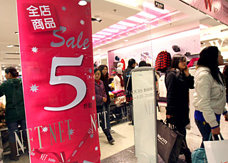 西安:商場(chǎng)打折吸引市民購(gòu)物