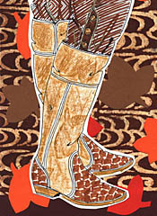 ROCKOCÒ品牌男鞋則使用奢華的18世紀(jì)裝飾,帶有一點諷刺的搖滾味道。空間設(shè)計大多在腳踝以上,是18世紀(jì)的及踝休閑鞋以及牛仔靴樣式。用料以小牛皮為主,印有巴洛克式風(fēng)格的設(shè)計圖案,浮雕式的灰泥效果以及壓紋蛇皮。 |
