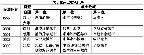 大學(xué)生對(duì)就業(yè)的地域十分看重,到北京、去上海,下廣州深圳成為大多數(shù)大學(xué)生的首選,不但人才短缺的西部無(wú)人問津,就連中部的大中城市也很少進(jìn)入大學(xué)生的第一視野。