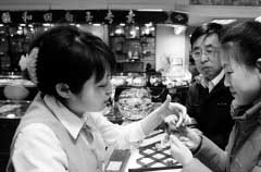 玉器產(chǎn)品主要分為兩類,一類是面向普通消費者的,供其平時佩戴、把玩,價格相對較低;另一類是面向高端客戶的,主要用于收藏,很多都是名家制作。記者了解到,目前價格大幅上漲的主要是后者,消費類玉器的價格依然保持平穩(wěn),對普通消費者沒有影響。 1月21日,記者來到了北京西單商圈。在君太百貨和西單商場,記者發(fā)現(xiàn),相對于其他柜臺前熙熙攘攘的客流而言,玉器柜臺的顧客少得可憐。記者詢問玉器的銷售情況,商場的工作人員告訴記者,年底買珠寶和黃金飾品的人比較多,玉器銷售沒有那么火爆。工作人員表示,很多消費者愿意在夏天購買玉質(zhì)首飾,冬天基本算是淡季。談到玉器的價格,工作人員表示,普通的首飾、掛件的價格沒有什么變化。 在一個專營和田玉的柜臺前,記者看到,這里的普通玉器價格在3000至8000元之間,稍微高檔一些的都在萬元以上。工作人員告訴記者,目前1萬到3萬元之間的印章、玉佩賣得比較好。 隨后記者又來到了北京王府井百貨大樓和工美大廈,這兩個地方的玉器柜臺前也沒有什么顧客。記者詢問玉器的銷售情況,工作人員表示,最近來詢問高檔玉器的顧客有所增加,銷量沒有明顯變化。普通的玉器首飾銷售比平時多一點,但也沒有太多變化,大多數(shù)來購買的都是千元左右的玉墜等掛件。記者詢問玉器價格有沒有什么變化,工作人員表示,高檔的翡翠鐲子、玉佩的價格漲了一些,“對普通消費者不會產(chǎn)生影響!惫ぷ魅藛T補充說。