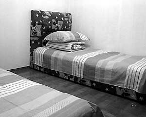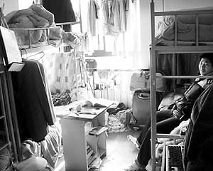 筆者自稱是準(zhǔn)備求職的學(xué)生,來到位于中潭路中遠(yuǎn)兩灣城的“易安居”求職公寓。筆者發(fā)現(xiàn),這個樓盤入住率低,一樓大廳沒有保安,也沒有安裝對講機和防盜門,可以自由出入。一名工作人員帶筆者參觀位于20樓的一處“雙人房”,約十平方米的小房間里只有兩個床墊、兩個小柜子和一臺小電視機。工作人員介紹,這間房每月租金700元錢。 隨后,工作人員又帶筆者到22樓看一間更便宜的房間,三室一廳的套房共有10張雙人床,每張床上都堆滿被子和雜物。房間是水泥地面,廁所里簡單裝了個淋浴頭,客廳里晾著兩排衣服。這里的床位每月360元,按天數(shù)算,則是15元一天。 兩套“求職公寓”里都沒懸掛營業(yè)執(zhí)照等證件。筆者問及經(jīng)營資質(zhì),工作人員立即回答:“這和入住沒關(guān)系,你沒必要知道!睋(jù)悉,這家求職公寓有自己的網(wǎng)站,此外還在一些學(xué)生網(wǎng)上發(fā)帖子和做廣告。整個暗訪過程中,工作人員沒有要求筆者出示學(xué)生證。 事后,筆者登錄“易安居”求職公寓網(wǎng)站,網(wǎng)頁上的“學(xué)生公寓實景圖”和實際情況大相徑庭。而筆者在一些房屋中介處了解到,同一地段15平方米左右的單間月租費為700元左右,價格不高于“求職公寓”。