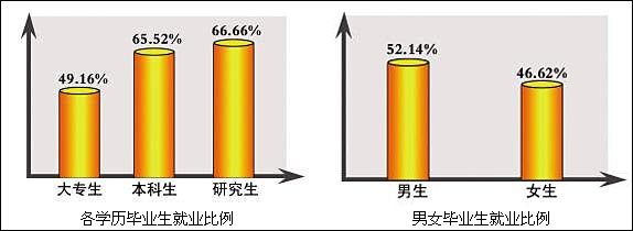 【調(diào)查】男性畢業(yè)生的“已簽約”和“已有意向但沒有簽約”的比例為52.14%,女性畢業(yè)生的比例為46.62%,兩者相差不到6個(gè)百分點(diǎn),相比去年14個(gè)百分點(diǎn)的差距有所縮小。此外,兩者對(duì)于可接受的工資起點(diǎn)也很一致,都主要集中在1000元—3000元。 【解讀】北大公共政策研究所分析認(rèn)為,隨著政府在消除就業(yè)歧視和實(shí)現(xiàn)平等就業(yè)方面政策導(dǎo)向性的增強(qiáng),性別差異在大學(xué)生求職過程中的影響盡管依舊存在,但程度已大為減輕。此外,造成這種現(xiàn)象的原因還和女大學(xué)生比例增加有關(guān)。