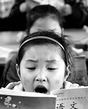 | 2月24日,河南社旗縣賒店鎮(zhèn)中心小學(xué)的學(xué)生在用循環(huán)教科書學(xué)習(xí)。宋同杰