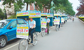 8月31日,濟(jì)南“萬人購(gòu)房團(tuán)”發(fā)起人在泉城路開展廣告宣傳活動(dòng)。本報(bào)記者