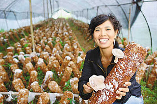 四川省華鎣市高興鎮(zhèn)高興村的農(nóng)民王偉,正喜滋滋地展示她在流轉(zhuǎn)租賃的土地上培植的食用菌。CFP
