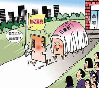 與商家的熱情相比,一項(xiàng)媒體調(diào)查顯示,目前在上海發(fā)放了十幾種消費(fèi)券,九成受訪者稱沒有用過,甚至有四成認(rèn)為是“炒作噱頭”。尤其是一些商家自行發(fā)放的所謂消費(fèi)券,混淆了消費(fèi)券和促銷券的概念,打擊了市民的消費(fèi)信心。 在北京市馬家堡地區(qū)的一家蘇寧電器,記者碰到了準(zhǔn)備購買微波爐的肖女士。她說:“我手里就有這種百元面額的消費(fèi)券,但只能在購買1000元以上的大件商品時才能抵用,購買小家電就用不上了,這跟以前流行的購物返券沒什么區(qū)別,還不如直接打折! 捧著一疊“拾味館”餐廳發(fā)放的30元一張的消費(fèi)券,北京消費(fèi)者鄭明軍有點(diǎn)無奈:“感覺這些消費(fèi)券就像是魚餌,吸引著我們再去消費(fèi),然后再得到新的消費(fèi)券,周而復(fù)始。”而對于“購房消費(fèi)券”,部分市民表示歡迎,認(rèn)為它作為一種促銷手段,和以往的“送家具”、“送車”相比,能給買房者帶來更多實(shí)惠。但大多數(shù)看房者則把這類讓利活動看作開發(fā)商的促銷把戲!鞍严M(fèi)券這個噱頭拿開,其實(shí)說明房子的價格還是可以再降的,并且很容易讓人懷疑開發(fā)商只是換了個方式,把原來打算降價的底線再提高了一點(diǎn),用來忽悠消費(fèi)者!币晃痪W(wǎng)友這樣說。