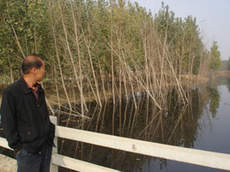 王建斌看著被污水泡死的樹(shù)木,黯然神傷。本報(bào)記者 李新民