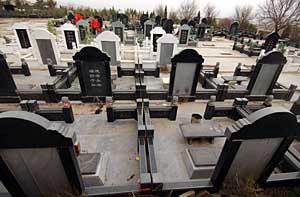 蘭州市民政部門近期對市內(nèi)部分公墓區(qū)進行檢查,并全面叫停了豪華墳墓建設,有幾處建成尚未出售的豪華墳墓已經(jīng)被拆除。圖為蘭州市榆中縣和平鎮(zhèn)一處公墓區(qū)已經(jīng)出售的豪華墳墓。聶建江