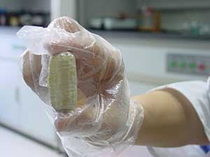 廣州白云機(jī)場(chǎng)海關(guān)關(guān)長(zhǎng)畢列佳介紹說(shuō),這些毒販攜帶的毒品海洛因外包裝都經(jīng)過(guò)機(jī)械化包裝和專業(yè)化處理,外形規(guī)則呈橄欖狀橢圓型,包裝緊密堅(jiān)硬,且耐腐蝕性非常強(qiáng),能在人體內(nèi)數(shù)日不會(huì)破損。并且根據(jù)不同人種的耐受力制造成每粒7克至15克不等的毒品。