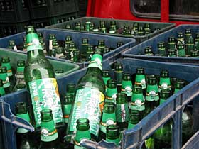 6月24日下午,記者來到天津市西青區(qū)南河鎮(zhèn)牛坨子村的一個小賣部,女店主?∑秸f,她干零售店有10年了,這些年一直賣豪門的“千杯”啤酒,華潤“清爽”不太好賣,于是這兩三年干脆就不賣了。6月15日,華潤的業(yè)務員開著貨車來找她,說“清爽”要打入這個地區(qū),今后這個村都得賣這個,“我用八箱“清爽”換你六箱“千杯”,旁邊的店都換了,我們領導說了,一天打一個村,你今天必須換”。 ?∑秸f,她跟華潤業(yè)務員討價還價,最終以十箱華潤“清爽”換了六箱豪門“千杯”。當時她還感覺挺合適,因為以少換多,這兩種啤酒的零售價又一樣,是1.5元/瓶?赊D(zhuǎn)天就后悔了,因為好多顧客習慣了“千杯”的口味,一看沒有“千杯”扭頭就走,反倒影響她的業(yè)務了。她不得不又去批發(fā)地進了七八箱“千杯”。 像?∑竭@樣,被華潤換了酒的小商戶還很多,而換酒后產(chǎn)生的影響波及到她們進貨的二級批發(fā)商。 天津市西青區(qū)“世斌酒水批發(fā)部”是當?shù)叵蛄闶鄣?點)批發(fā)酒水的二級批發(fā)商,最近,經(jīng)理周世斌和他愛人為豪門“千杯”啤酒瓶箱的周轉(zhuǎn)問題急得直撓頭。周世斌說,這幾年啤酒瓶和塑料箱都是各品牌專用,瓶箱的周轉(zhuǎn)流程是這樣的:零售店(點)→二級批發(fā)商→一級批發(fā)商→啤酒制造商。賣哪個牌子的酒要回來哪個牌子的瓶箱,這樣才能保證從一級批發(fā)商再次進貨。他介紹說,他的零售點基本都是賣“千杯”的,過去賣多少酒基本能回收多少瓶箱。可6月中旬以來,各零售點差不多都讓華潤用“清爽”換了“千杯”,換走的酒不知去向,結(jié)果收回來的瓶箱都成了華潤的。 在后院,記者看到了一大堆華潤的瓶箱,周世斌說,他沒賣過華潤的酒,現(xiàn)在回來一大堆華潤的瓶箱,現(xiàn)在零售點每天還要大量進豪門“千杯”,他已經(jīng)沒有足夠的瓶箱去一級批發(fā)商那里換酒了。過去他一天進一次“千杯”,現(xiàn)在瓶箱周轉(zhuǎn)出現(xiàn)困難,不得不一天進兩次貨,不僅影響他的正常銷售,一級批發(fā)商也有意見,說增加了他們的運輸成本。 他還翻出一厚疊押金條說:“我在豪門公司交押金進了400多套瓶箱,最近只剩下了五六十套了。如果以后豪門的瓶箱還回不來,這些押金就打水漂了! 一級酒水批發(fā)商天津市西青區(qū)張窩鎮(zhèn)“茂盛副食酒水批發(fā)部”經(jīng)理胡衛(wèi)標說:“我干了十幾年的酒水批發(fā),賠錢換人家的酒,這樣的事我從來沒見過!