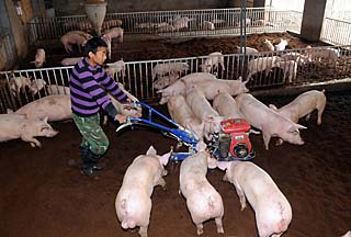 目前,相比今年3月份時(shí)的最高價(jià),山東地區(qū)生豬和豬肉價(jià)格的降幅分別為34%和30%。山東省畜牧獸醫(yī)信息中心分布在全省25個(gè)價(jià)格信息點(diǎn)的統(tǒng)計(jì)數(shù)字顯示,到11月9日,山東地區(qū)待宰活豬價(jià)格為11.17元/公斤,環(huán)比上周又下降1.24%;豬肉價(jià)格為18.20元/公斤,環(huán)比下降0.93%。記者還了解到,目前,山東省肥城市等一些地方的活豬交易價(jià)格,已出現(xiàn)10元/公斤的低價(jià)。 山東畜牧部門(mén)統(tǒng)計(jì)顯示,2008年3至4月份,山東地區(qū)生豬價(jià)格就在上下震蕩中呈現(xiàn)下滑態(tài)勢(shì),4月底往后,下滑越來(lái)越快:4月28日,山東地區(qū)活豬價(jià)格為16.86元/公斤,8月25日降到13.1元/公斤,到11月初降到11元/公斤左右。 記者了解發(fā)現(xiàn),目前,山東地區(qū)大型養(yǎng)殖場(chǎng)和散戶(hù)都面臨虧本。 大型養(yǎng)殖場(chǎng):山東省鄒平縣長(zhǎng)山鎮(zhèn)養(yǎng)豬大戶(hù)李元(化名)給記者算了筆賬:目前,當(dāng)?shù)赜衩變r(jià)格約為1470元/噸,豆粕價(jià)格約為3500元/噸,豬料價(jià)格達(dá)2.3元/公斤。自繁自育100公斤肥豬,成本超過(guò)10.5元/公斤,目前生豬價(jià)格約為11元/公斤,已接近盈虧平衡點(diǎn)。李元目前存欄能繁母豬600頭,存欄仔豬及育肥豬5000余頭,壓欄仔豬2000余頭。“生豬價(jià)格連續(xù)走低,養(yǎng)豬戶(hù)不敢購(gòu)豬育肥了!彼麩o(wú)奈地說(shuō)。 散戶(hù):自繁自育剛剛保本,購(gòu)買(mǎi)仔豬育肥每頭賠100元左右(100公斤)。山東省肥城市老城鎮(zhèn)毛小莊村村民王軍目前存欄母豬6頭,仔豬30頭。他說(shuō),當(dāng)?shù)刭?gòu)買(mǎi)一只豬仔要花400元左右,育肥飼料需要800元左右;再加上用藥費(fèi)用、人工費(fèi)用,成本合計(jì)超過(guò)12元/公斤。目前當(dāng)?shù)鼗钬i價(jià)格為11元/公斤,還沒(méi)扣除運(yùn)費(fèi),每頭肥豬虧本超過(guò)100元!叭ツ赀@個(gè)時(shí)候,當(dāng)?shù)孛款^肥豬售價(jià)2300多元,利潤(rùn)能到400多元!蓖踯娬f(shuō)。 王軍目前還不敢淘汰母豬,因?yàn)楝F(xiàn)在母豬價(jià)格僅8元/公斤左右,“賣(mài)了就把本都賠光了!钡,毛小莊村部分散戶(hù)已開(kāi)始淘汰母豬打算退市了!翱催@架勢(shì),生豬價(jià)格還得落,年底可能10元/公斤都沒(méi)人要了!蓖踯姄(dān)心地說(shuō)。