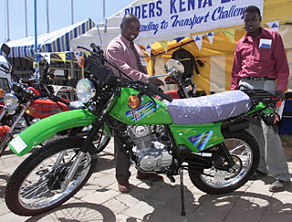 2001年3月2日,兩名東非汽車大展的參觀者在中國生產(chǎn)的“嘉陵”牌摩托車前駐足觀看。展會(huì)上展出的中國汽車、摩托車質(zhì)量過硬、價(jià)格便宜并且在設(shè)計(jì)上考慮了非洲地區(qū)的路況條件,吸引了許多非洲參觀者的目光。 |