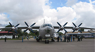 2003年11月3日,坦桑尼亞首都達(dá)累斯薩拉姆國際機(jī)場的跑道上,中國航空技術(shù)進(jìn)出口總公司將兩架“運(yùn)8F200”型運(yùn)輸機(jī)移交給坦桑尼亞空軍。 |