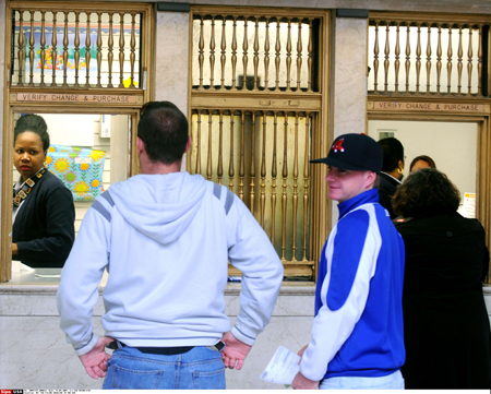 紐約法利郵政大樓的服務窗口。新華社/西霸 |