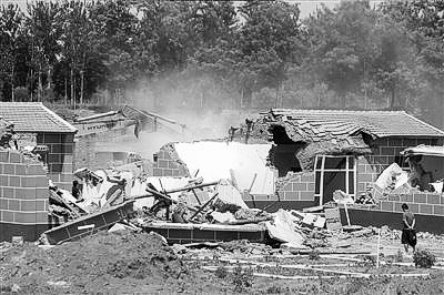 張振夢寐以求的陽光房是住不上了。昨天,記者見到張振時,他始終嘀咕著“全倒了,這回真沒戲了……”從他茫然的眼神看得出來,他已經完全沒了主意!吧洗螐姴饡r我也知道,本想退出來,但開發(fā)商說上面有關系,只要把大棚配管房面積改小就沒事。”張振說,由于當時政府執(zhí)行強拆的力度并不大,他便聽信了開發(fā)商一個名叫劉文的銷售經理的話。果然,在暫停了兩個月后,“禾惠莊園”改頭換面,以“東華養(yǎng)生莊園”的名義繼續(xù)施工,并且承諾今年6月底前交房。沒想到,就在交房前一個月,通州區(qū)國土、建委、城管等部門突然聯(lián)合執(zhí)法,將莊園內180棟即將竣工的生態(tài)房全部推倒。