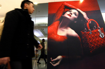2010年1月2日,顧客從上海市南京路一家商場(chǎng)內(nèi)的廣告前走過(guò)。新華社記者 陳飛