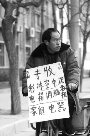 2月3日,常駐北京月壇北街回收廢舊家電的小販李旺,又迎來(lái)了生意興隆的一天。