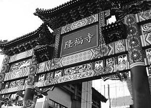 | 早先隆福寺廟會熱鬧的場景已難尋覓,而這個后建的牌樓卻讓人們記住了它。 | 隆福寺廟始建于明景泰一年(公元1452年),清雍正元年重修。隆福寺的廟會,已有二三百年的歷史。據(jù)《大清一統(tǒng)志》載:“隆福寺,逢每月之九、十有廟市,百貨駢闐,古玩字畫,風(fēng)味小吃,花鳥魚蟲——,為諸市之冠!鼻寮螒c寫于二十二年的《草珠一串》載:“東西兩廟貨真全。一日能銷百萬錢,多少貴人閑至此,衣香猶帶御爐煙”。說明當時隆福寺廟會繁榮的光景。而真正的繁榮是在清末時期,即光緒二十七年(1901年),隆福寺廟宇毀于火。燒毀天王殿后,迄未重修。廟中喇嘛將地皮按塊租給攤商,收取地皮費,名為香錢。那時,廟會已改為逢每月一、二、九、十日開市。這個處在內(nèi)城中心區(qū),居民密集,最大的隆福寺廟會與西城護國寺廟會東西對應(yīng),被稱為東廟與西廟,形成城區(qū)兩大雜品市場。經(jīng)營品種上至綢緞布匹,下至花鳥魚蟲,無所不有,當然小吃品種更是遍布廟會各個角落。但多數(shù)小吃攤商,還是集中在廟會西側(cè),這里有殘存西配殿,一些賣茶湯、油炒面、豆汁、杏仁茶等流食的小座商在此還設(shè)有座位,桌上鋪有潔白桌布,門臉上懸掛白布簾,這在當時的廟會上,衛(wèi)生條件算是一流的了?蓜e小看這些小座商、攤商、推車和擔擔者,其中不乏精工細致,饒有風(fēng)味的品種。如扒糕、灌腸、炸丸子、羊霜腸、爆羊肚、驢打滾、吊爐燒餅、餛飩等等,以現(xiàn)在技術(shù)水平衡量,亦稱上乘。不少老北京市民特意到廟會吃上一盤豌豆黃、灌腸,以飽口福。 至今這里的小吃店還頗有名氣,保留著一些傳統(tǒng)品種,受到老北京人的歡迎。廟會上洋煙畫攤前也常常是擠滿了人,過去有搜集洋畫片的,和現(xiàn)在集郵相似,因此產(chǎn)生了交換洋煙畫的“自由市場”。隆福寺后門通錢糧胡同聚集著很多乞丐,等候逛廟的人給他們一些施舍。 新中國成立后,政府將各種攤販集中在廟前的大棚內(nèi),固定攤位,獨自經(jīng)營。名曰“東四人民市場”,后改為國營百貨商場。上世紀80年代又把前面只有一層的營業(yè)大棚拆掉,換了一座高八層,設(shè)備先進的商業(yè)大廈,改名為“隆福大廈”。原隆福寺廟的建筑已蕩然無存。