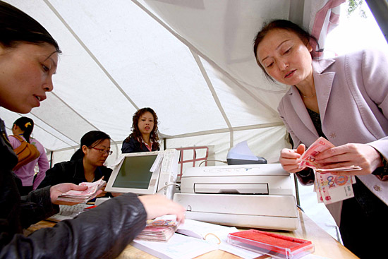首個災區(qū)帳篷銀行開始營業(yè)