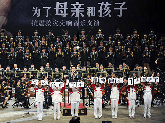5月22日,“為了母親和孩子——抗震救災(zāi)交響音樂義演”在北京世紀(jì)劇院舉行。義演呼吁社會(huì)各界伸出援手,幫助地震災(zāi)區(qū)人民重建家園。新華社記者