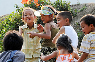 6月5日,幾名映秀心連心學校的學生在放學路上嬉戲。目前,學校一共有學生17名,包括從幼兒園、小學到初中各年齡段的孩子。他們在這里除了正常學習外,更多的是接受心理輔導,以幫助他們樹立信心,走出災難的陰影。新華社記者