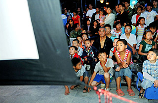 6月7日,青川縣受災(zāi)群眾在看電影。新華社記者 謝環(huán)馳